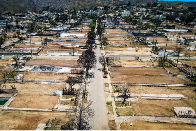 2025 年初發生的帕利塞茲(Palisades)與伊頓(Eaton)大火損失極其慘重。官方統計造成 31 人死亡,摧毀約 13,000 棟住宅。根據摩根大通的數據,保險損失估計超過 200 億美元,總經濟損失恐達 500 億美元。然而,火災發生一年後,洛杉磯縣僅有不到 10 棟房屋完成重建。特朗普批評加州許可審查慢如蝸牛,導致災民空有預算卻無法動工。