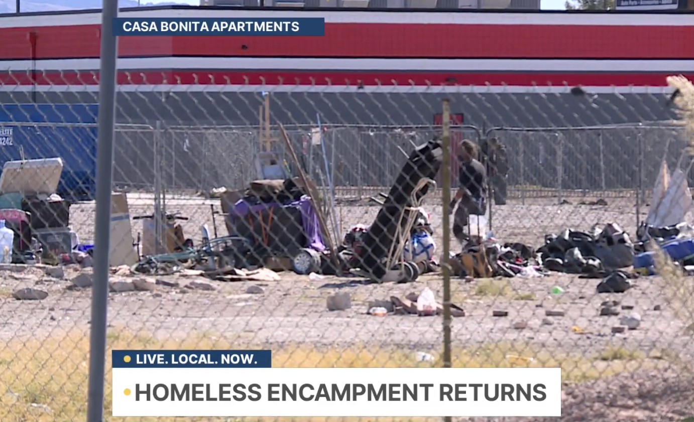 記者晨楓報導,拉斯維加斯東區一處公寓大樓的居民表示,他們對於住家後方私人空地上遊民營地捲土重來感到非常不滿,儘管執法部門一再清理,但問題始終無法根除。