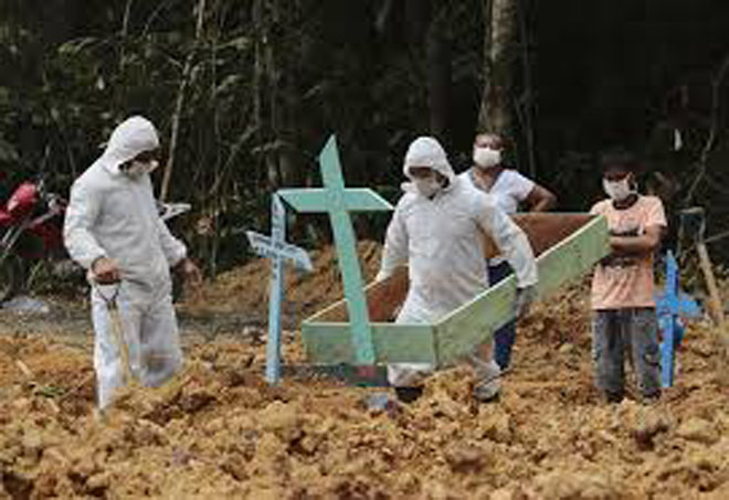 瑪瑙斯疫情危機嚴重,市立公墓殮葬數跟著大增,當地政府只好挖建集體墓穴,埋葬冠狀病毒疾病死者。