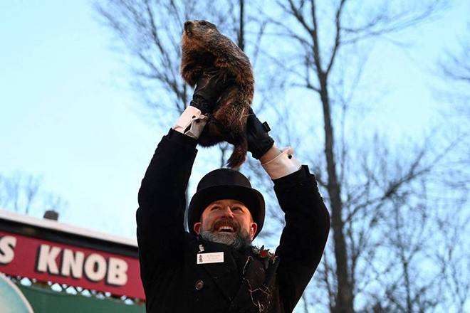 去年旁蘇托尼鎮的土撥鼠節因疫情關係,首度改線上直播,今年第136屆恢復實體舉辦,近5000名粉絲一早就聚集在土撥鼠洞穴前,迫不及待地呼喊著「菲爾!菲爾!」當地土撥鼠協會主持人用手杖敲了敲洞穴門後,把睡眼惺忪的土撥鼠菲爾抓出來高舉在空中,接受眾人熱情歡呼。主持人接著宣布菲爾今年的預測:牠看得到自己影子,「冬天還會持續6週!」