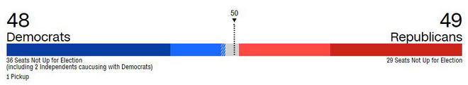 目前參議院戰況焦灼。共和黨已取得49個席位。由於參議院議長為民主黨人,共和黨需再拿下2席才能控制參議院。