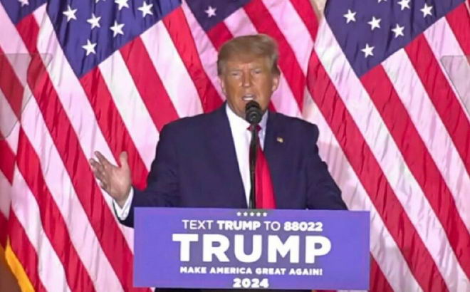 “為了讓美國再次偉大和輝煌,我今晚宣佈競選美國總統,”川普在他的Mar-a-Lago俱樂部對數百名支持者、俱樂部成員和聚集的媒體說。他站在那裡,身旁有30多面美國國旗和橫幅,上面寫著他的“讓美國再次偉大”(make America great again)口號。“我參加競選是因為我相信世界還沒有看到這個國家的真正榮耀。”