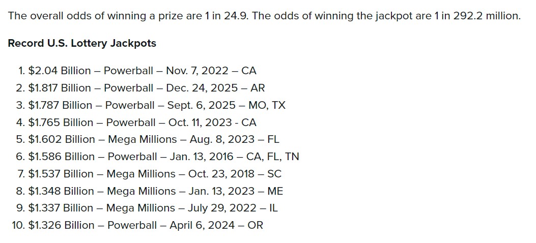 【綜合報導】美國樂透「威力球」史上第2高獎金於平安夜開出頭獎,阿肯色州一名幸運兒贏得18億1700萬美元彩金,結束長達3個月的連續槓龜。