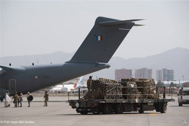 法A400M軍方運輸機在喀布爾機場準備載運軍事設備撤離。