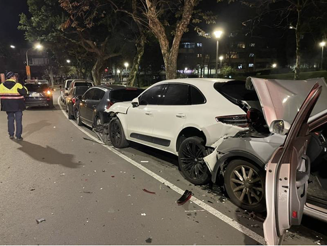 台北市街頭發生離譜的連環追撞車禍,24歲羅姓男子深夜駕駛奧迪Q3返家,行經南港研究院路二段時,疑因疲勞打瞌睡,先失控撞上路邊停放的保時捷Macan休旅車,再推撞前方包括BMW大7在內的4輛轎車、箱型車,共造成6輛車受損,警方到場替羅男酒測,初步排除酒駕肇事,詳細車禍原因警方還要釐清。