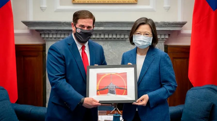 臺灣總統蔡英文周四在首都臺北與亞利桑那州州長道格·杜西一起慶祝他們成為技術合作伙伴關系。該活動以宣布一家臺灣公司打算在亞利桑那州建造的價值120億美元的芯片制造工廠為亮點。